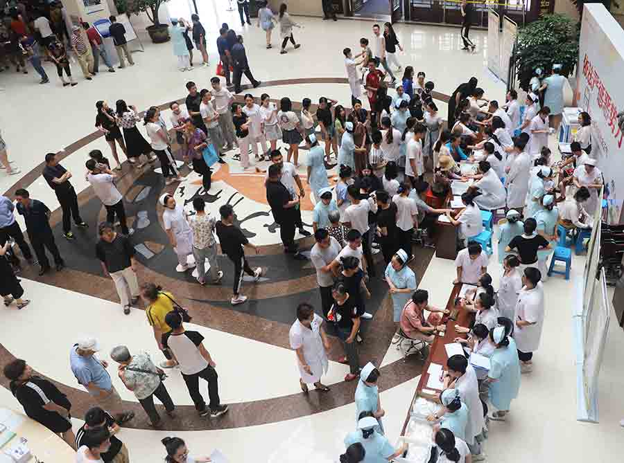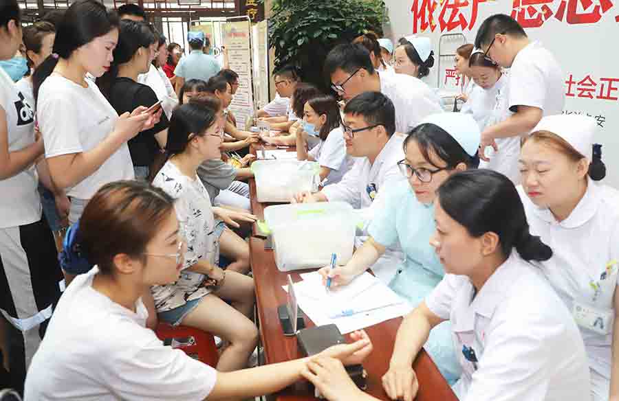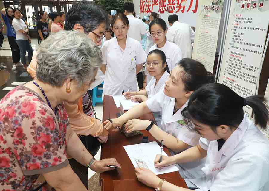 7月12日,中文成人网 总部、平阳部、东部三个院部同时开启史上最大优惠活动,冬病夏治“三伏贴”贴敷活动,原定8点的活动,不到7点就有市民到医院大厅等候了,8点活动正式开始时,总部9个科室问诊桌前早已排起长队,据统计,活动当天,仅医院总部就有400多位市民参与活动,其中给75位70岁以上的老人免费进行贴敷。