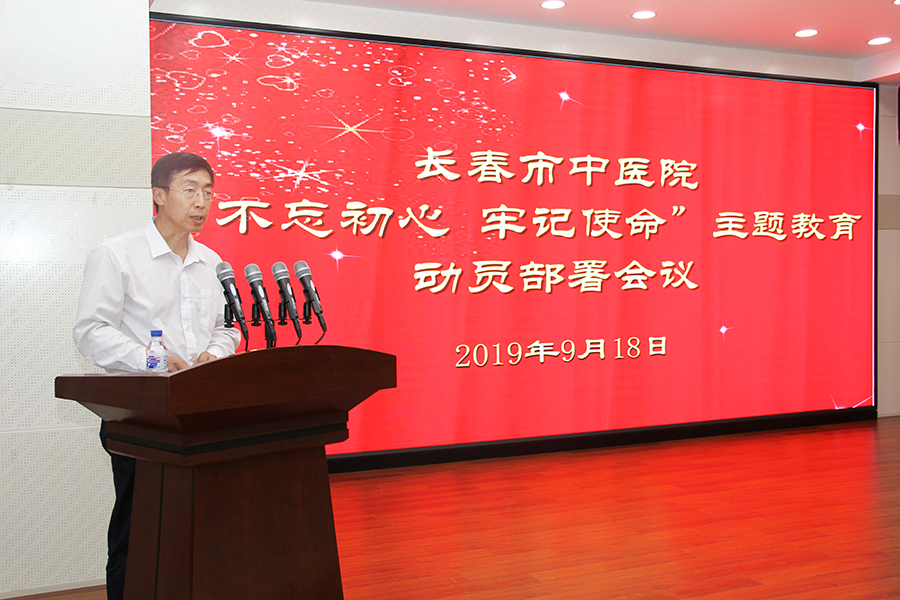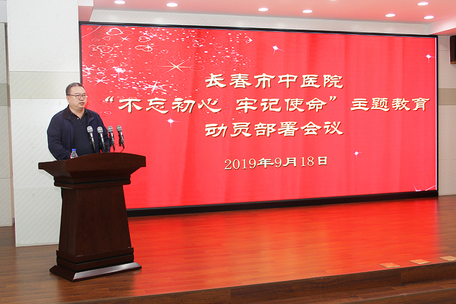 随后,长春市卫健委职业健康处处长高磊代表长春市卫健委党组对医院“不忘初心·牢记使命”主题教育动员部署会议作出指示,肯定了医院对本次主题教育活动的重视,行动迅速,及时传达学习委党组会议精神,并制定实施方案,为主题教育开展打下了坚实的基础。最后,高磊处长提出几点要求,要聚焦根本任务、把握“十二字”总要求、紧扣五句话目标、坚持“贯穿始终”、力戒形式主义抓好落实。