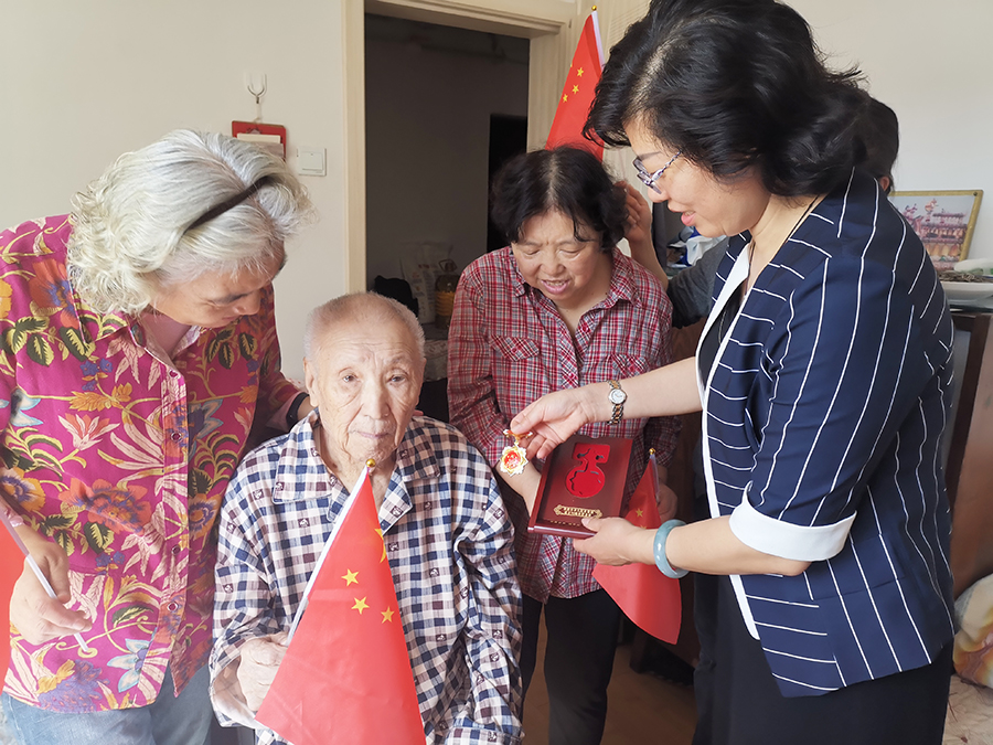 在离退休老干部家中,周艳代表院班子详细了解了两位老同志的家庭、生活和健康状况并向他们发放了慰问品——面、米、油,传递党的关怀与温暖。同时,周艳为退休老干部颁发庆祝中华人民共和国成立70周年纪念章。纪念章的重大意义,象征中华人民共和国70年奋斗历程,寓意全国各族人民大团结,构建人类命运共同体的愿景,礼赞国家富强、民族振兴、人民幸福的辉煌成就以及在70年辉煌奋斗成就的基础上,不忘初心、继续前进的坚定决心。