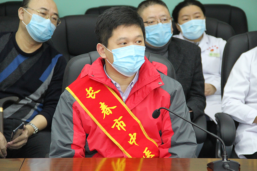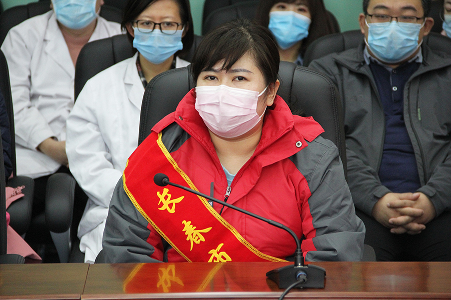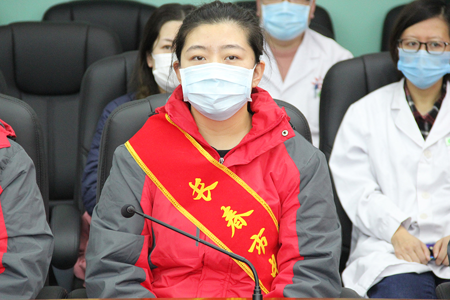 壮行仪式上,当4位战士庄严地举起右手,郑重地宣读出征誓词“我自愿参加抗击新型冠状病毒肺炎医疗队......”后,会议室内响起热烈的掌声,这掌声包含着同事们浓浓的情谊,有依依不舍之情,有敬佩之意,还有对他们平安归来的期盼。