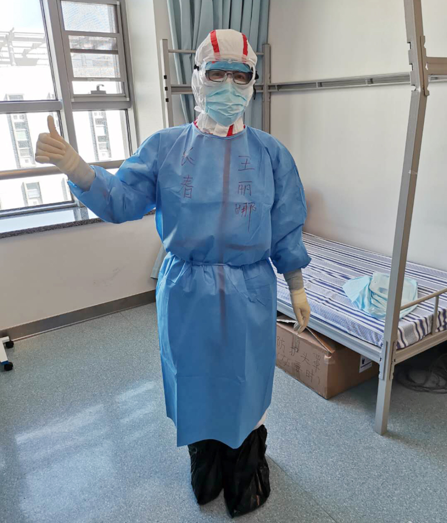 我们虽然来自于不同的医院,但此时我们有一个共同的身份——“逆行者”。尽管我们彼此只能靠防护服上的名字辨认,但相互的眼神里写满了鼓励。第一日上岗是白班,我在同事的帮助下一步步穿好防护设备,认真的护士长又给我做了最后检查。我细数了一下,一共是两层帽子,两层口罩,三层鞋套,三层手套,再加上防护服、隔离衣、护目镜,真可谓是全副武装。在厚重的防护服下,平时轻松的动作变得非常笨拙,强烈的窒息感时刻存在着。我详细询问患者有哪些不适的症状,解读化验检查,采集鼻咽试子标本,根据病情调整中药……每说几句话,都需要深深地吸一口气才能继续。