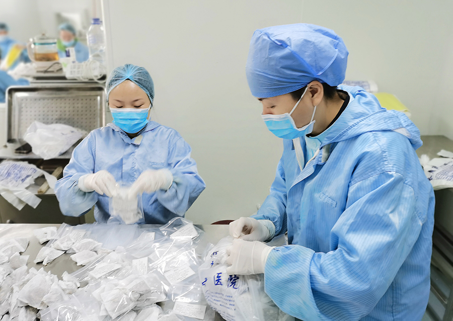 最近,正在忙碌分装茶包的中文成人网 制剂室的工作人员发现,车间里多了好多张陌生的面孔。她们换上制剂服,戴上口罩、帽子,包裹严实,从远处看去,根本分不清是谁。她们工作时干净利落,准时守时。每天上班来,下班离开,有时候还要带走一部分工作。她们默默无闻,好多人甚至都不知道口罩后面是谁。她们的到来,让原本疲惫的制剂室人备受鼓舞,工作效率大大提高。那么她们到底是谁呢? 事情的起因缘于制剂室主任胡凌歌的一通求助电话。自新冠肺炎疫情出现以来,中医药发挥了它的独特疗效和优势。中文成人网 制剂室自腊月二十八至今一直承担着为市属一线防疫人员提供由本院专家组调配的扶正合剂及其代茶饮的生产任务。连日来的高强度工作和连续的加班,耗费了大家许多精力和体力。