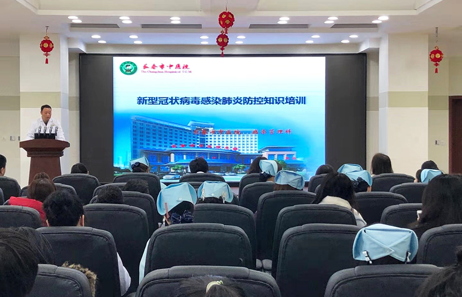 ▲春节前夕,王宏图对医护人员进行新型冠状病毒肺炎防控知识培训