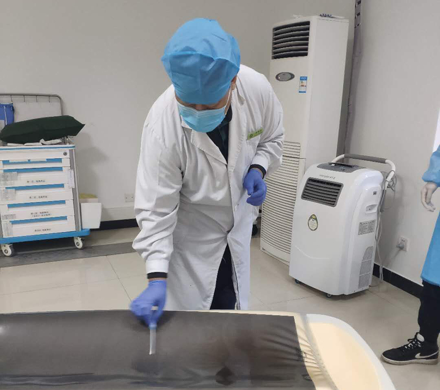 从1楼到13楼,每一次院感监测,王宏图要不停地检查一整天的时间,身影穿梭在每个楼层,每个科室、每个临床、所有公共区域......进行现场指导、检查,包括空气质量、医护人员的手、消毒液配比、所有科室的物表等。保证消杀到位、无死角,确保每位职工防护到位,手消是否合格......一天下来,他的腿常常累得酸痛抬不起来。在保证医院防控安全基础上,王宏图还承担吉林省感染指挥中心、长春市感染指控中心、吉林省感染督查组工作,负责病例的救治指导和会诊工作。