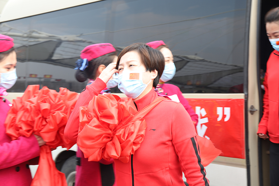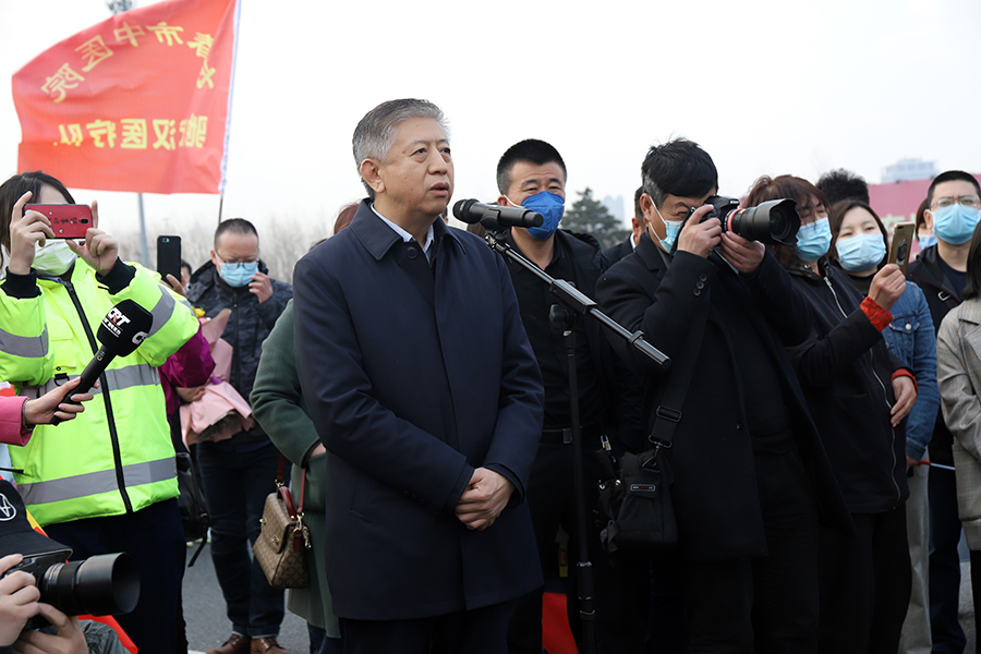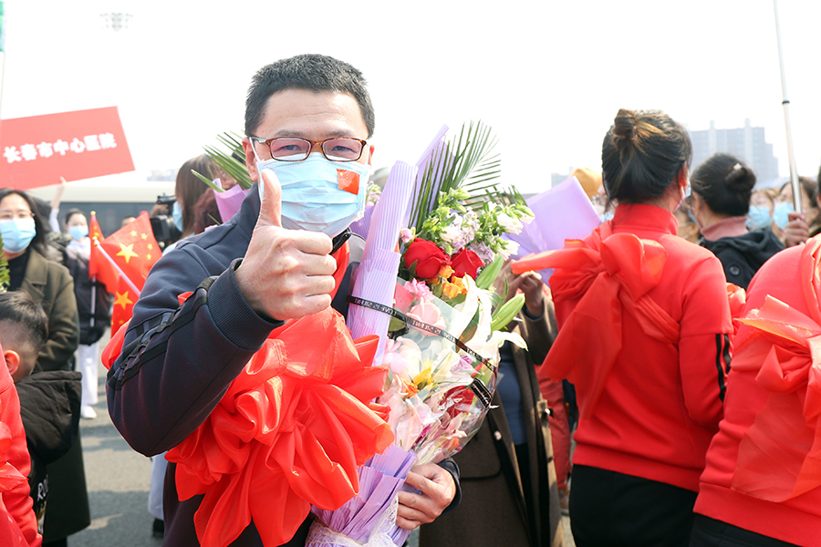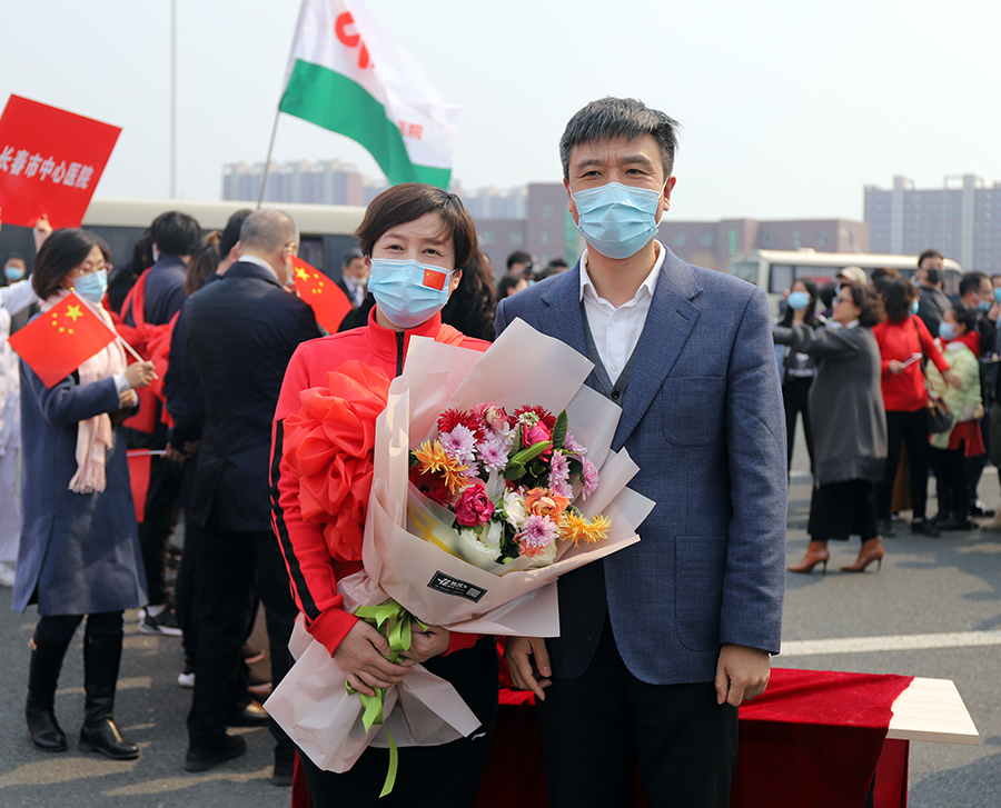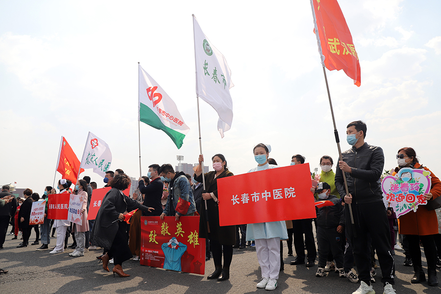 欢迎仪式上,长春市卫健委党组书记、主任马平向白衣战士致敬,他代表全系统近万名职工,欢迎大家凯旋,欢迎大家全身平安归来。“两个多月的时间里,大家克服了很多困难,诠释了白衣天使无私奉献、大爱无疆的高风亮节,也鼓舞着长春市全系统的同志坚守抗疫一线,把长春的抗疫工作完成的非常出色,得到了市委、市政府的高度赞扬。”马平主任说,武汉是英雄的城市,长春也是一个英雄的城市,每一位普通的医务工作者都是英雄,在国家和在病人最需要的时候,义无反顾,舍小家,顾大家,为国家发光发热,为长春争得荣誉,为长春市卫健系统争得荣誉。