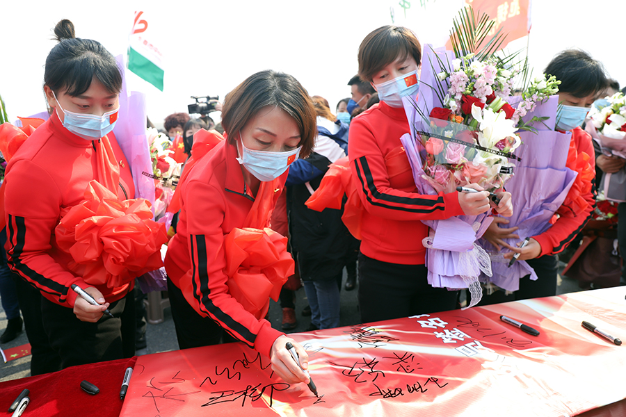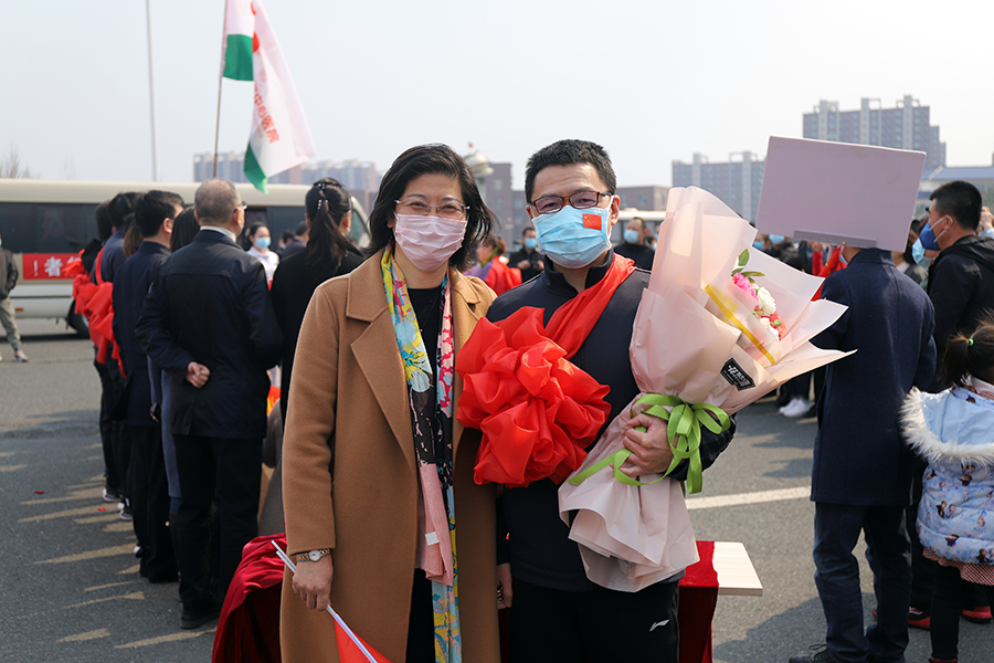 勇士逆行时,朔风凛冽寒未尽;英雄归来日,春华正浓花满枝。现场,大家用笑容展现最美瞬间,用相机定格这辉煌时刻。