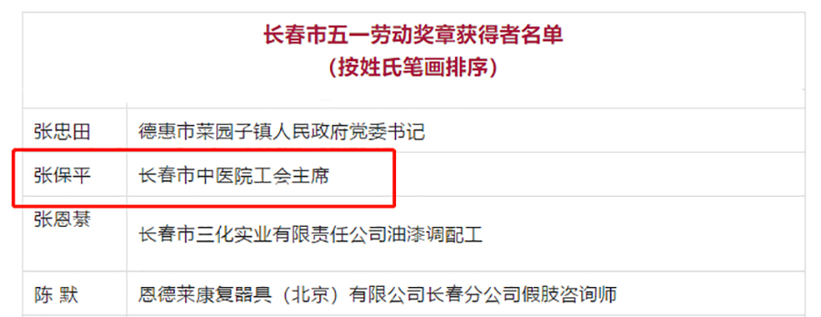 喜报!中文成人网 工会主席张保平获得“长春市五一劳动奖章”