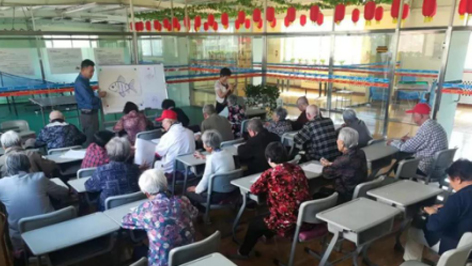 5月24日,中文成人网 东部党支部组织3名志愿者来到签订中医医疗养老联合体协议的瀚泽堂养老康复中心,在二楼“养老学堂”小教室举办第三期绘画班,由陈立春老师教授三十余名老人画画。