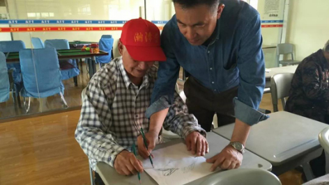 陈老师的绘画课特别受老人的欢迎,课堂上总是人满为患。为了满足老人对绘画艺术的追求,养老中心特意调整房间,将原有的麻将室打造成新的绘画教室。