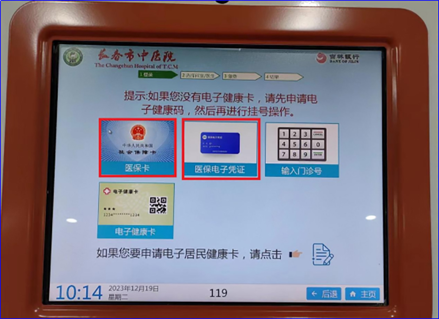 2.医保患者选择,医保卡或者医保电子凭证进行挂号