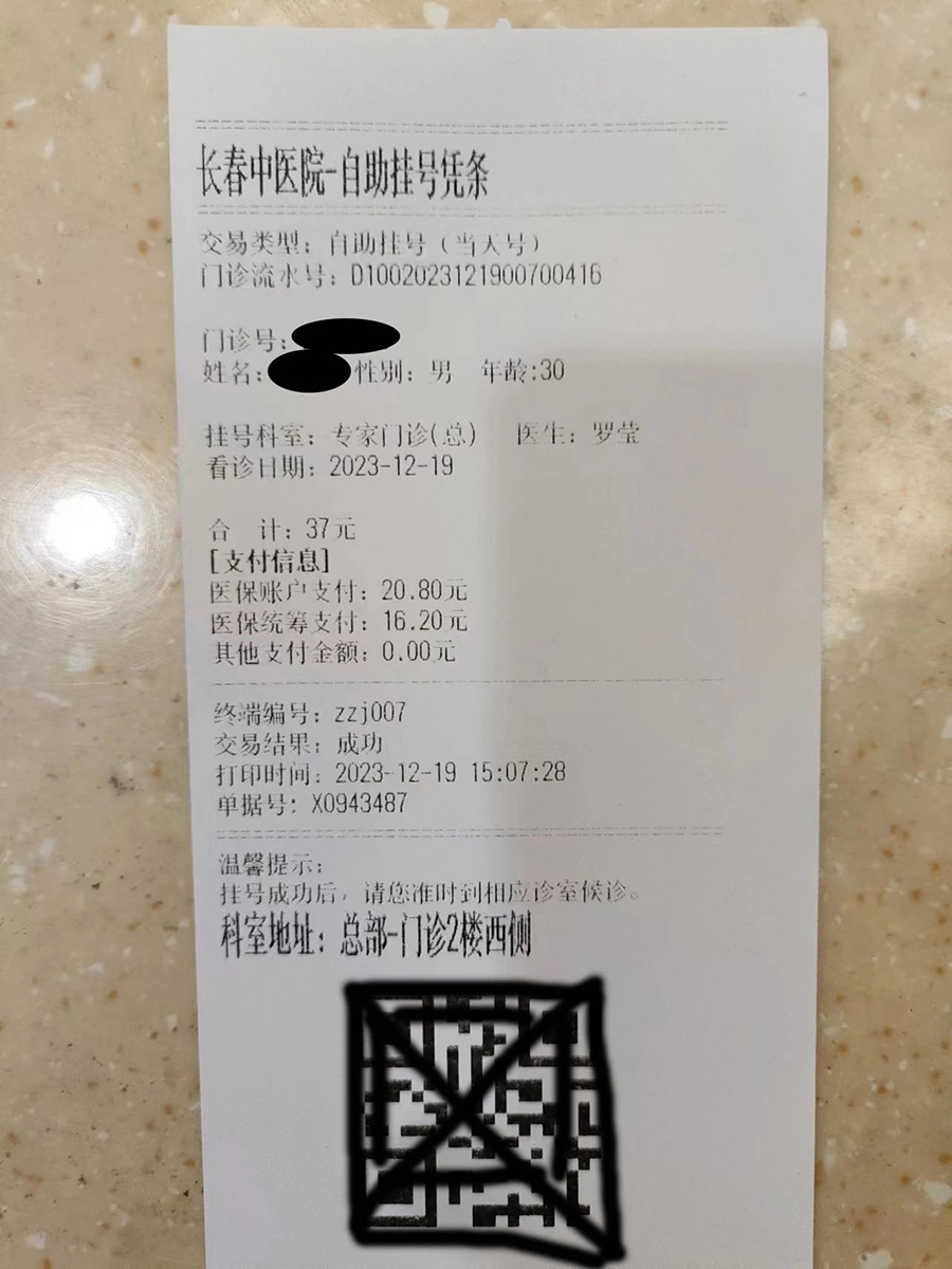 12.支付成功后,自助机会将挂号凭证打印出来,患者拿挂号凭证到门诊科室进行就诊