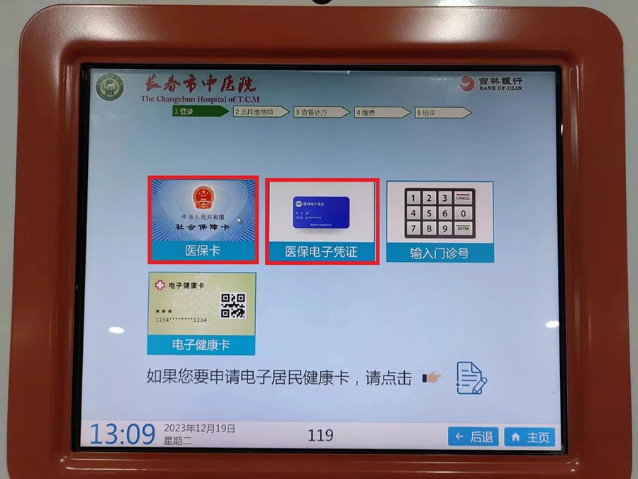 2.医保患者选择,医保卡或者医保电子凭证进行缴费