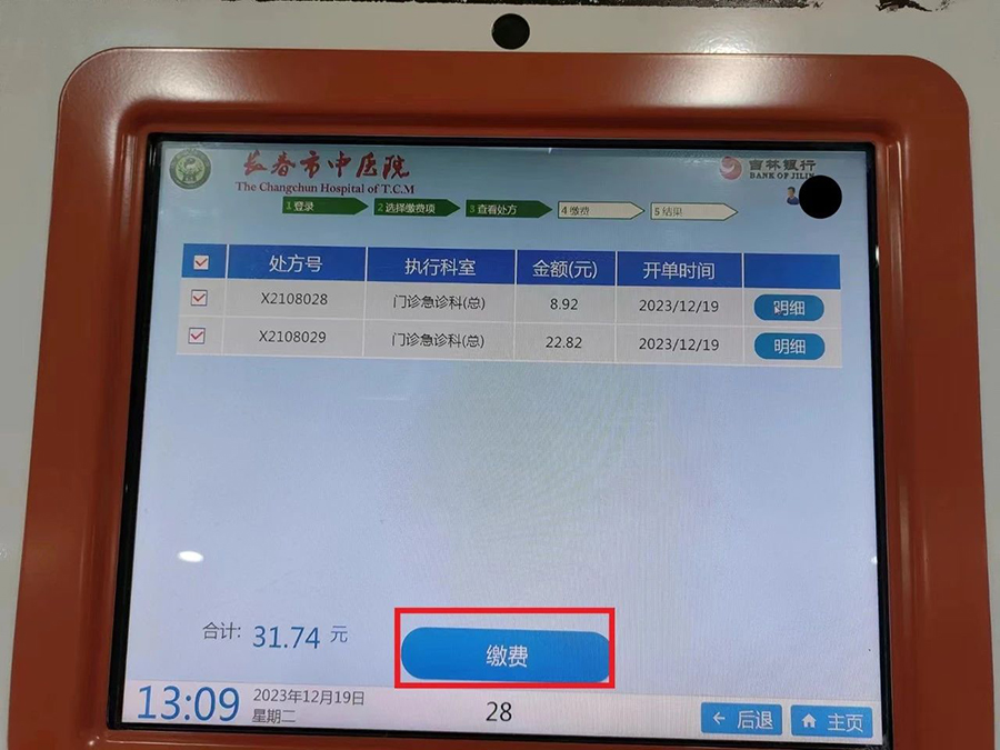7.选择缴费后会出现医生开方,点击明细可以详细查看处方,处方确认后点击缴费