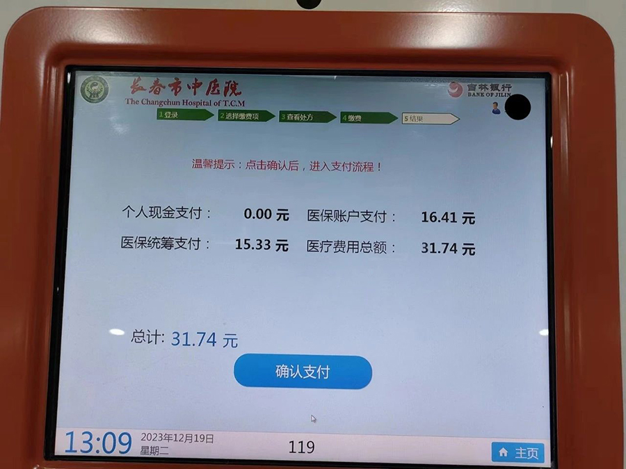 10.支付成功后,自助机会将缴费凭条打印出来,患者拿上缴费凭条前往对应科室进行后续治疗