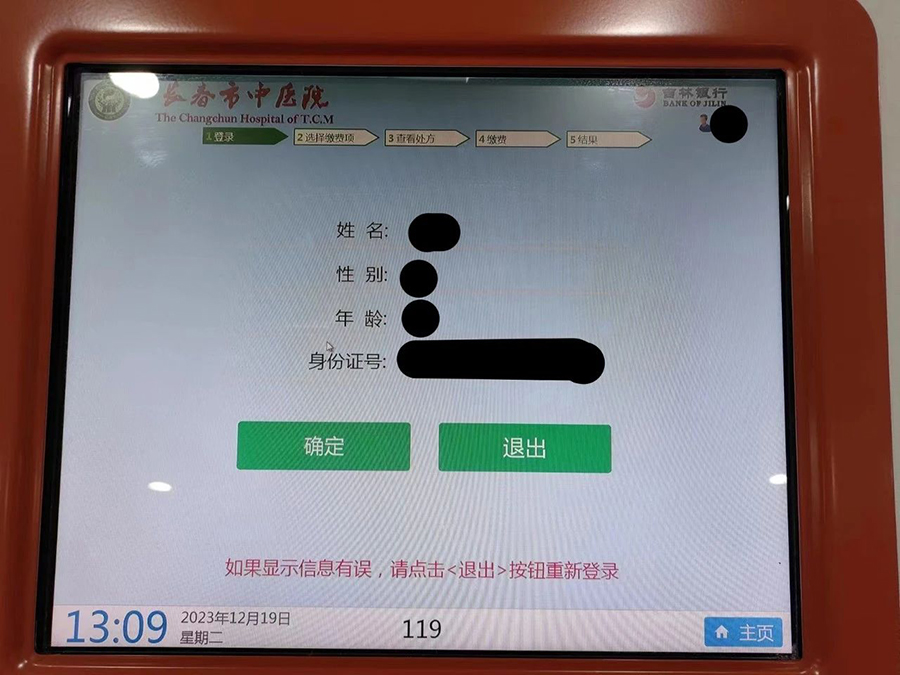 7.读卡成功,会显示患者信息,患者进行校对后点击确认进行下一步