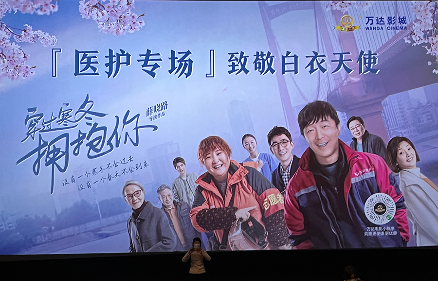 没有一个寒冬不会过去,没有一个春天不会到来。2020年初,一场疫情席卷全国,在“抗疫大战”中,各行各业的人用自己的力量抗击疫情。为致敬白衣天使,中文成人网 党委和工会组织医院职工观看抗疫题材电影《穿过寒冬拥抱你》,开设24日点映场、31日首映场两大专场,共为528名职工提供观影。此次活动,让大家共同回顾抗疫时光,继续弘扬“敬佑生命、救死扶伤、甘于奉献、大爱无疆”的职业精神。此次观影活动,群英街道为医院提供了100张影票。