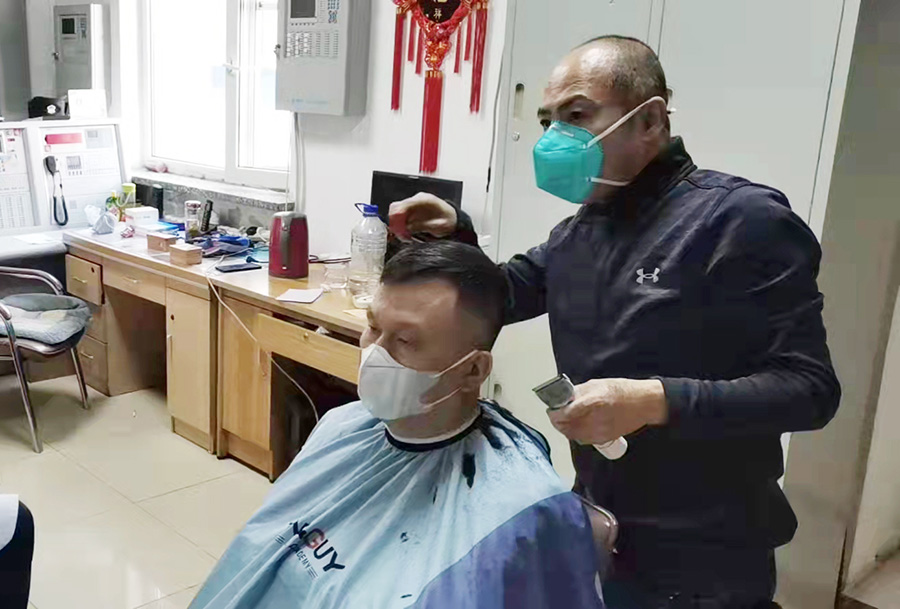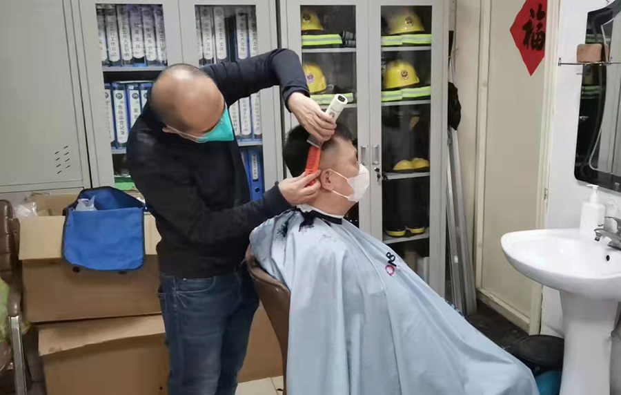 疫情期间,医院平阳部的医护人员以医院为家,生活起居全都在医院。保卫科干事王玮达发现大家头发都很凌乱,疫情期间服务行业也都关门停业,没地方理发。于是,王玮达就和院领导请示,利用空闲时间免费为大家理发。就这样,平阳部“Tony王”理发室被批准“开业”。上午男士,下午女士。大家纷纷闻讯赶来,“生意”异常火爆,营业第一天就接待了二十几位“顾客”。