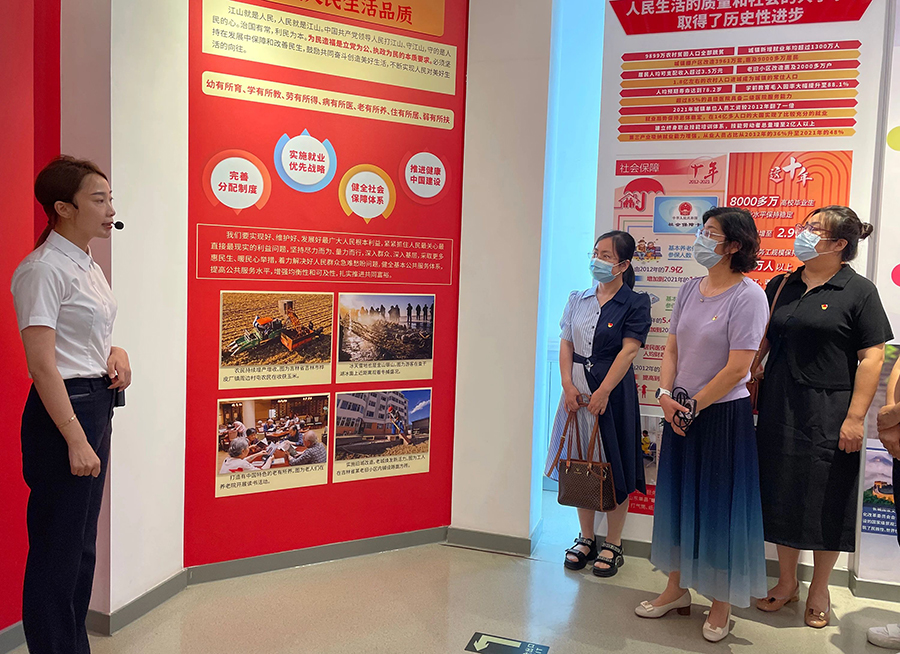 在主题教育展馆,党员们在讲解员的引领、讲解下,怀着崇敬的心情,有序参观了“国际共产主义运动中的党性光辉”“中国共产党人的党性光辉”“新时代伟大征程的思想领航”三个展厅。