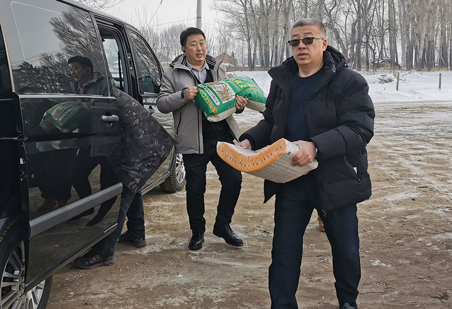 严寒的腊月里,慰问组一行不畏寒冷,走进了村民家中,为他们送去了大米、面粉、挂面、豆油等生活物资。这些物资不仅为村民提供了物质上的帮助,更为他们送去了节日的温暖和关爱。