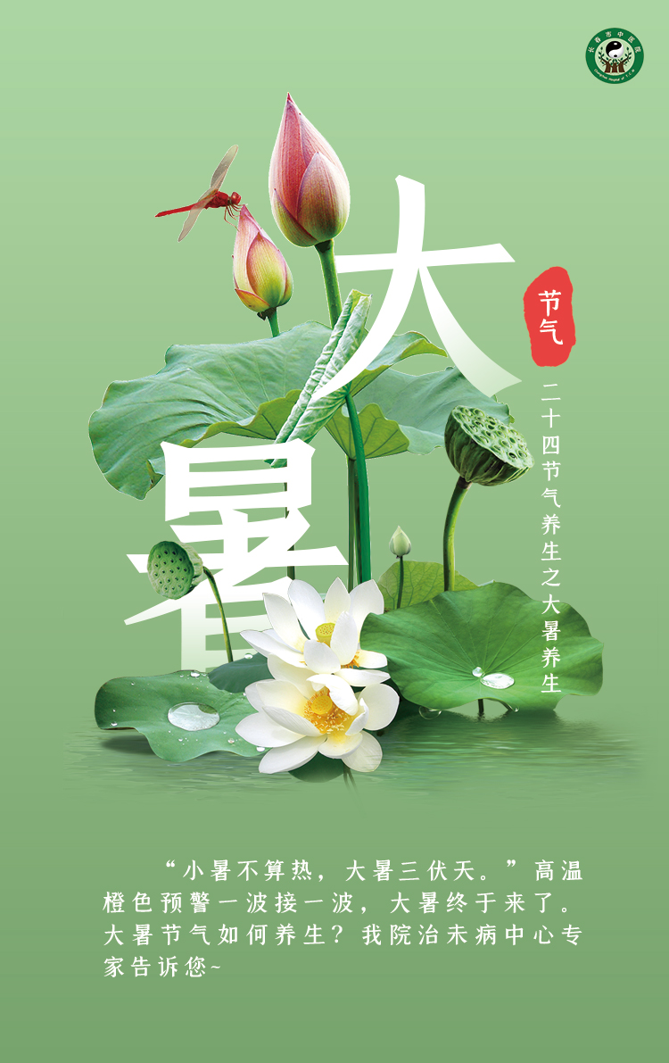 8张图片,告诉您大暑如何养生~ 中医院 |2020-07-27 10:55 上一篇小暑养生做到这6点,可健康过夏! 下一篇今日白露,中医专家提示您要这样养生~ 返回列表 相关信息 节气养生 | 中文成人网 肺病科专家告诉您夏至如何养生 2018-06-25 大暑时节,送上降温“大法” 2019-07-24 节气养生 | 热气腾腾是夏季 大暑养生需谨记 2018-07-24 节气养生 | 中文成人网 老年病科告诉您芒种如何养生 2018-06-06 三伏季如何养生?这堂直播课中医告诉您 2022-07-23