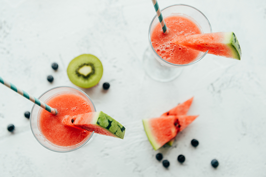 【做法】西瓜去皮、去籽,番茄沸水冲烫,剥皮去籽。二者同时搅汁,两液合并,随量饮用。
