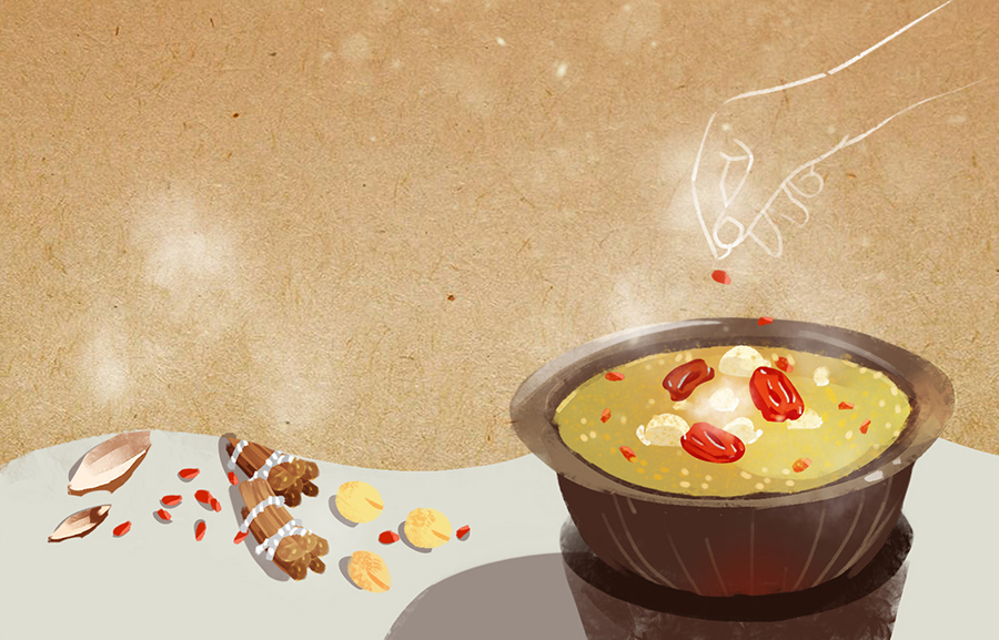【材料】红枣10颗,山药50克,大米100克,冰糖适量。