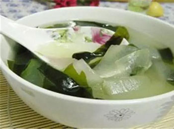 【做法】将海带洗净切碎,银耳泡发后与海带一起加水用文火煨成稠羹,加冰糖适量。1日内服完,可常服。