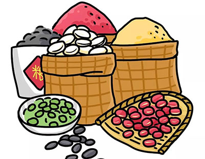元代医家朱丹溪主张“少食肉食, 多食谷菽菜果, 自然冲和之味”。唐代医药学家孙思邈告诫人们饮食“常宜轻淡甜之物, 大、小麦曲, 粳米为佳”, 并说“善养生者常须少食肉, 多食饭”。而孩子脾常不足, 夏季由于天气闷热, 消化能力有所下降, 故芒种时节, 饮食宜清淡、质软、好消化, 不可过多摄入高热量食物, 可适当吃些粳米、红米、红豆、绿豆、小麦、大麦、粟米、薏苡仁、扁豆等甘淡平补之物。饮食烹调和菜蔬炒制中也不宜添加过多食盐、食糖以及辛辣调料, 以免影响食欲、消化。