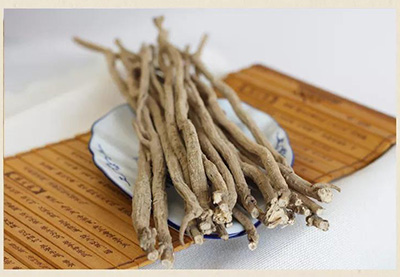 药材:呈细长圆柱形,挺直或稍弯曲,长15-70cm ,直径0.4-1cm。表面灰黄色或淡棕色,有微扭曲的细纵皱纹、排列稀疏的侧根痕和横长皮孔样突起。质硬脆,易折断,受潮后变软,断面平坦,淡棕色,略呈角质样而油润,中心维管束木质部较大,黄白色,其外周散有多数黄白色点状维管束,断续排列成2-4轮。气微,味微甜而稍苦涩。