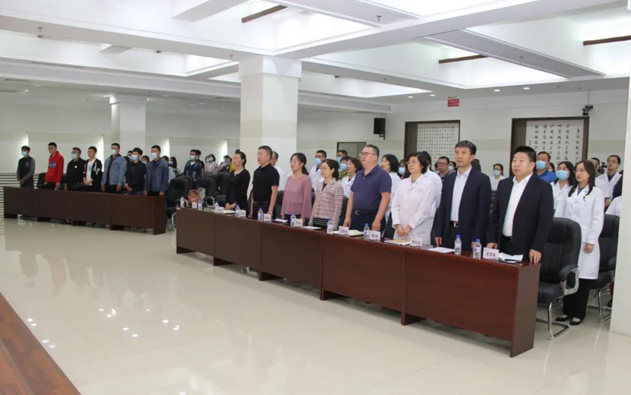 最后,在杨启光副院长带领下,全体人员高举右拳,庄严宣誓,他们用铿锵有力的声音表达了为祖国医药卫生事业发展和人民身心健康奋斗终生的决心。