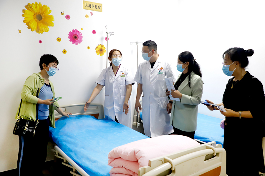韩秀杰一行先后参观了总部妇科门诊、疗区,对医院妇科设置、医疗文件及中医领域开展的项目进行相关询问,尤其是对中医特色诊疗服务、急诊急救方面做了详细了解。在手术室和综合治疗室,刘丽敏对中医药治疗外阴白斑、盆腔炎、盆腔肿物等特色方法向韩秀杰一行进行了详细介绍,在疗区细致了解中医药透药、敷贴等中医诊疗技术,医护人员在现场进行了操作指导。另外,双方还就医联体规范化建设工作、远程医疗系统建设工作、派驻专家对基层进行对口支援工作、推动资源共享、医院环境消毒监测工作、强化合作与协同等进行了深入交流。