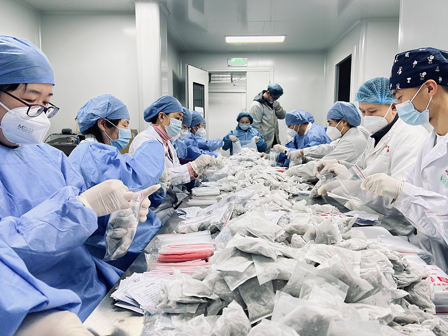 面对日益严峻的疫情形势,16人的工作小组即便通宵达旦,也满足不了生产后的分装工作,但制剂工期不能延误,甚至还要提前。中文成人网 副院长石贵军、钱锐,紧急从康复科、住院处、中医传统诊疗门诊、腔镜室、放射线科、针灸科、口腔科、医保科、妇科、眼科、儿科、皮肤科、急诊室、手术室、按摩科、总部收款处、平阳部收款处及总务科调配了30人协助代茶饮分装工作。就这样,桌子上堆成山的代茶饮一次次被分装、运走、填满、分装……,大家挑灯夜战,没有说笑声,只听到袋子摩擦的“沙沙”声。