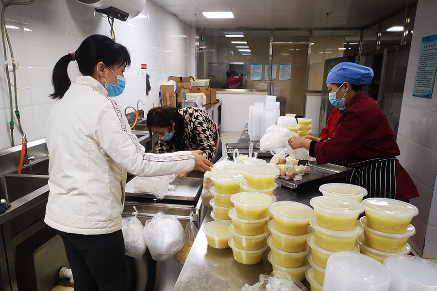 对此,中文成人网 总部伙食科多措并举,再次启动“送餐到疗区”关爱服务,让患者足不出疗区即可购买到营养丰富的饭食。早餐提供粥、煮鸡蛋、馒头、花卷、酱菜等,患者可按需购买;午餐和晚餐是两荤一素。饭菜在餐厅分装打包后,再由工作人员运送至固定点供患者购买。