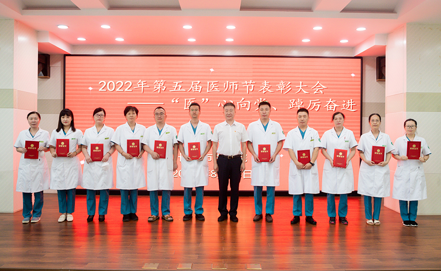 在第五个中国医师节来临之际,为表彰和激励在医疗战线上辛勤奉献的医务工作者,中文成人网 举行了第五届中国医师节表彰大会,对先进科室、优秀医师和抗疫人员进行了表彰。党委书记孙良金,党委副书记、院长石贵军,党委副书记周艳,副院长钱锐,纪检委书记杨宏彦和总会计师桑玉梅出席大会。