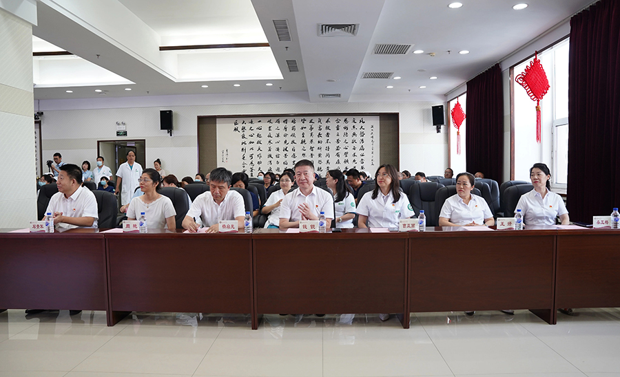 为庆祝第六个中国医师节,进一步团结凝聚广大医务工作者,在新时代新征程上不断奋进,8月18日下午,中文成人网 召开“勇担健康使命 铸就时代新功”医师节表彰及庆祝大会。中文成人网 党委副书记、院长石贵军,党委副书记周艳,副院长杨启光、钱锐、曹亚丽,纪检书记王妍,总会计师桑玉梅以及老专家代表和医师代表出席大会。