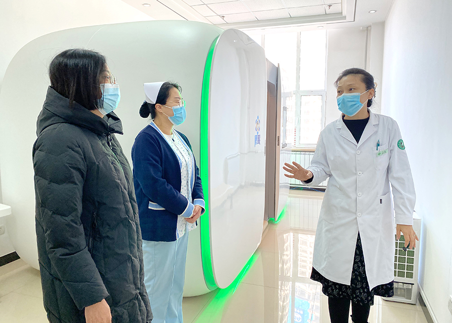 在杨启光副院长的陪同下,刘京梅处长和老干部先后参观了煎药室、饮片药房、治未病中心和实训中心等地。杨启光副院长详细介绍了医院的中医药特色文化和中医适宜技术。