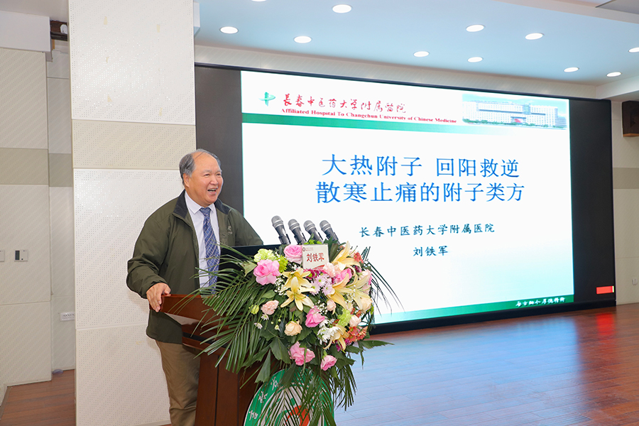 ▲吉林省名中医、长春中医药大学终身教授刘铁军围绕中医治未病理论在临床慢病中的实际应用,分享了《大热附子 回阳救逆——散寒止痛的附子类方》。