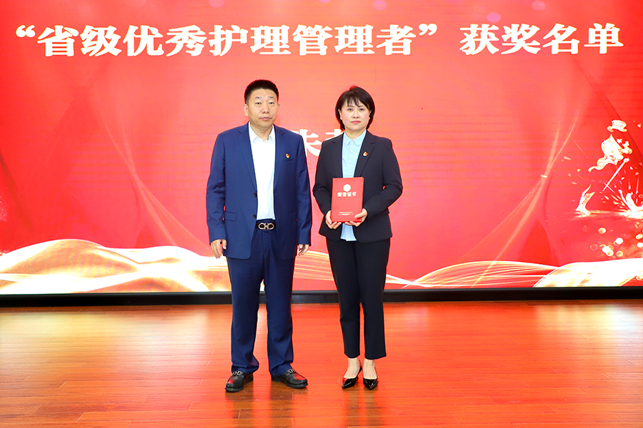 ▲石贵军书记为“省级优秀护理管理者”颁奖