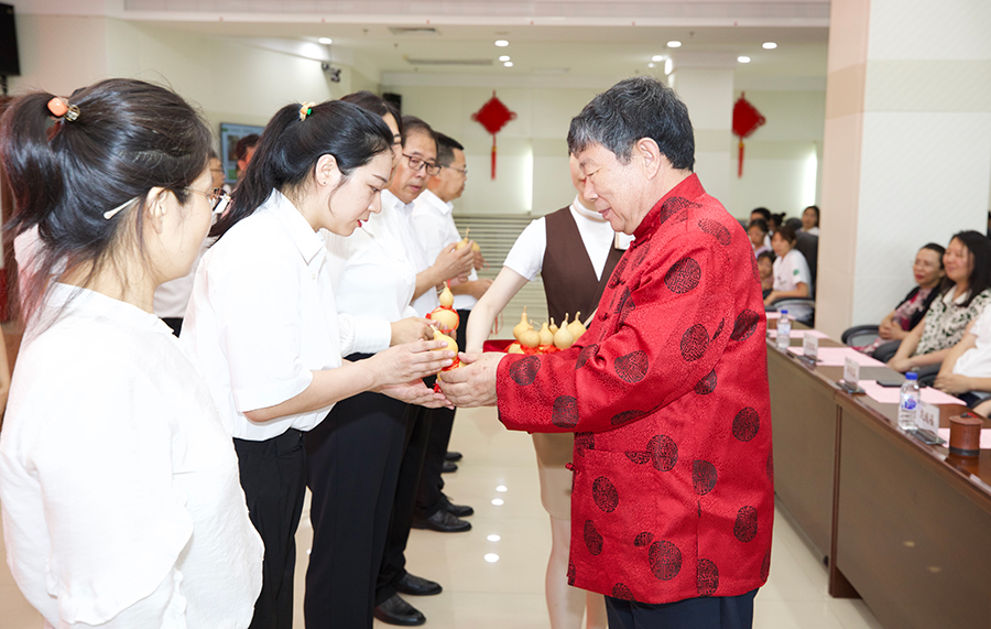 赵继福教授一一回礼,赠葫芦于各位弟子,寓意弟子早日悬壶济世。