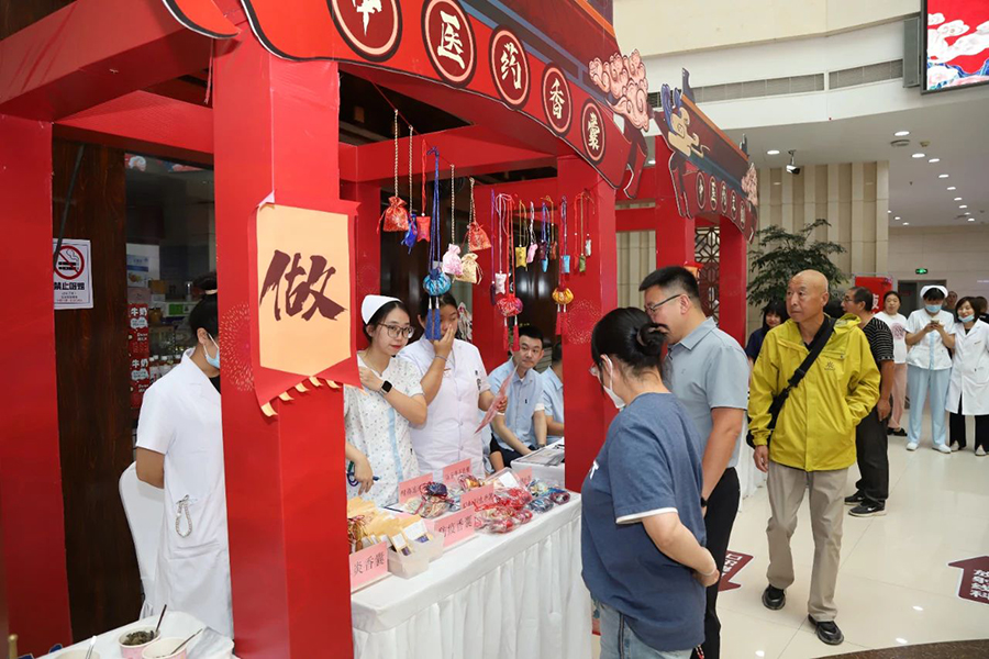 在一楼中医药文化体验区,各式各样的活动让人目不暇接。市民们不仅可以品尝到由五行理论精心制作的糕点,感受美味与养生的完美结合;还能亲手制作中医香囊,精选的中草药散发出阵阵香气,既美观又富有寓意。此外,代茶饮、院内制剂、特色足浴等体验项目也备受青睐,大家纷纷排队体验,感受中医药文化的独特魅力。