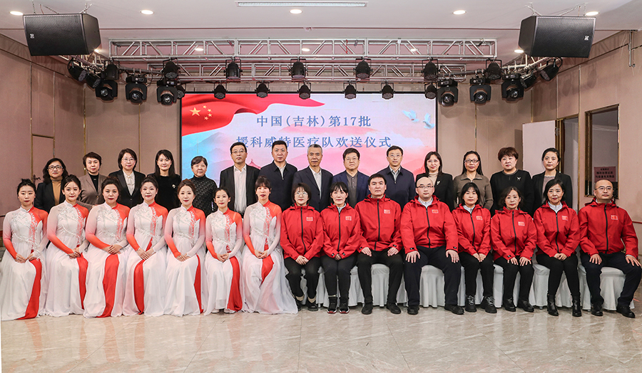 1月17日,在中国(吉林)第17批援科威特医疗队欢送仪式上,省卫健委办公室主任邓立权,省卫健委国际交流与合作中心主任郭良友,中文成人网 副院长曹亚丽,以及吉林省、长春市部分医疗机构的相关领导齐聚一堂,共同为即将出征的医疗队送上最真挚的祝福。