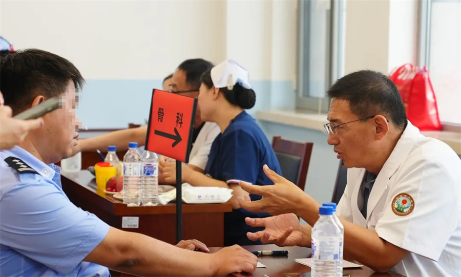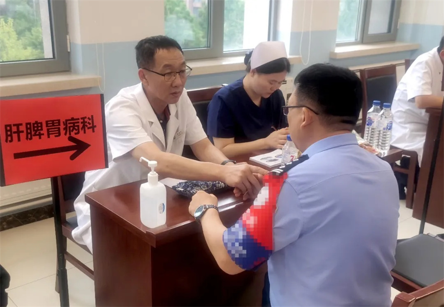 讲座结束后,专家们迅速投入到紧张的义诊工作中,为前来咨询的公安干警们进行细致的身体检查和诊断。