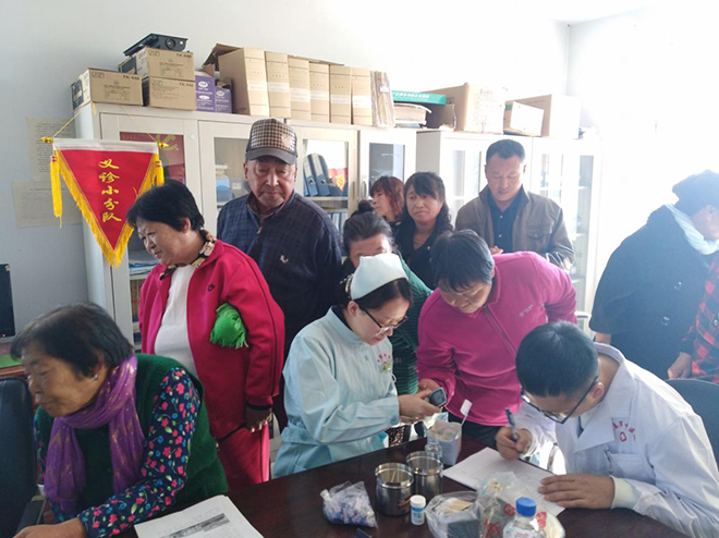 2018年10月12日星期五上午,在秋高气爽的十月,为了贯彻落实健康城市中医药服务,中文成人网 义诊医疗队走进了四家乡卫生院。此次义诊医疗队由中文成人网 医务科科长曹亚丽、总部糖尿病内分泌科负责人庄军、心病科于海龙主治医师等医护工作人员一行9人组成,他们不顾辛劳,长途跋涉来到了四家乡卫生院,给当地村民送去健康和温暖。