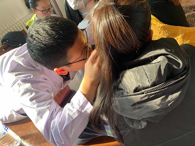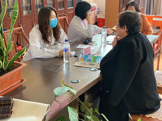 义诊活动现场,老年病科邢秀丽主任、眼科韩光主任、针灸科张亚菊主任、心病科陈淑玲主任医师、肛肠科于波主任医师、糖尿病科李戈副主任医师、脑病科吕宏魁主治医师、外科张喜峰主治医师、骨科董玉柱主治医师,妇科于金平主治医师、耳鼻喉科邵卓主治医师、皮肤科乔军苹主治医师、急诊科李海燕主治医师的一个个座位俨然成了一间间小“诊室”。老师们向医生提起,平时工作繁忙,压力大,很少进行户外体育锻炼,这对身体健康有很大的影响。每位义诊专家都耐心的听取教师们的困惑,并为之提供专业的解答。