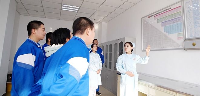 相见:在医院党办主任赵妍、后勤党支部书记徐波的带领下,同学们参观了中文成人网 实训中心和在中文成人网 门诊办、治未病中心主任张春玲的带领下参观了治未病中心。