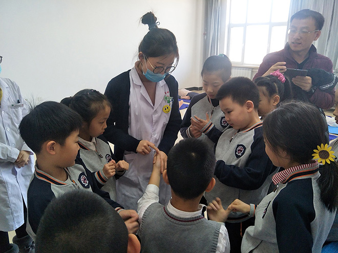 最后孩子们来到4楼治未病中心,先是跟家长一起了解了中医治未病的理念,即“未病先防、既病防变、愈后防复”,又一起做了手指操和护眼操,还观看了中医特色疗法之一的火罐疗法,小朋友们都觉得特别新奇有趣。