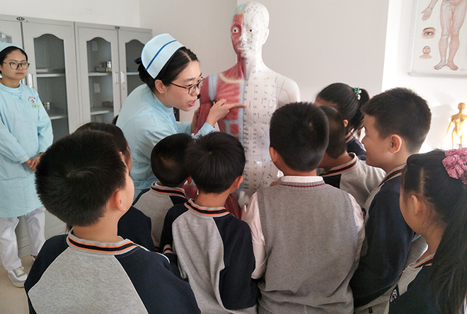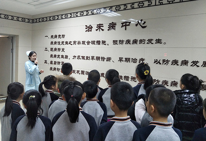 作为长春市中小学健康教育实践基地,中文成人网 中医药实训基地1月份正式向全市中小学生开放,截止1月11日,一周的时间中文成人网 健康教育活动已迎接共九所中小学的孩子们参观,累计学生近200人,家长近160人。该中心,1月7日迎来了第一批中小学生是长春外国语小学的同学们,中文成人网 护士讲解员董强从一楼大厅用中医阐释生命起源的地标图开始讲起,为孩子们声情并茂地描绘出一幅中华传统文化的恢弘画卷。然后孩子们又在二楼和三楼的浮雕前驻足聆听了董老师讲述的中医故事,阴阳和谐的理论以及生命的起源和发展。