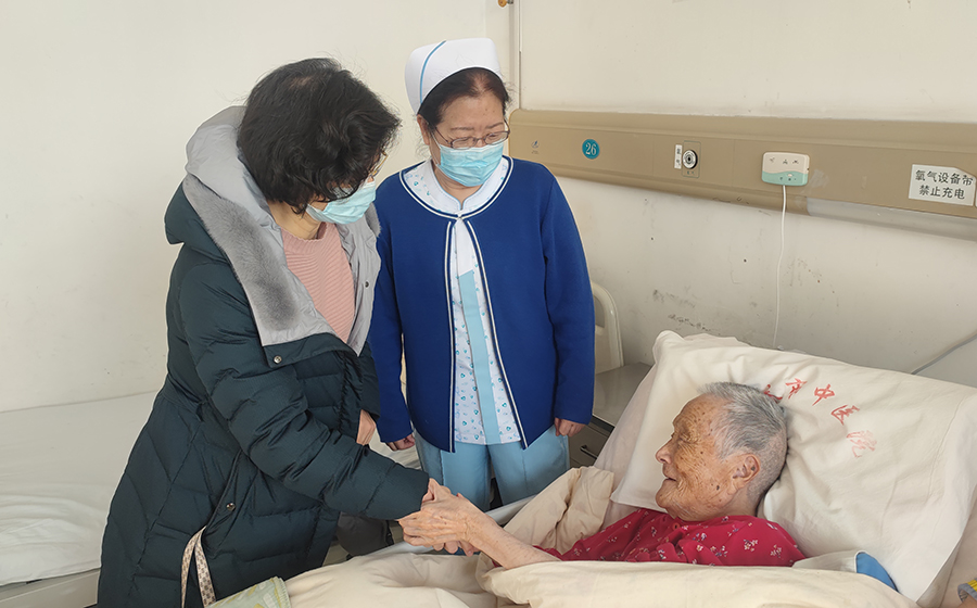 为切实把党中央、省委关于离退休工作的各项方针政策落到实处,按照长春市委老干部局、长春市卫健委部署和要求,在2022年新春佳节即将到来之际,1月27日上午,中文成人网 党委副书记周艳和离退休党支部书记郭婷走访慰问了98岁高龄的离休抗战老党员杨华。周艳说:“我们代表全院职工来看望您,给您拜年了!祝您新年快乐、身体健康!”慰问中,周艳还耐心倾听杨老的心声,并详细询问其身体状况,询问生活上有没有困难需要解决等问题,并送上了新春慰问金。