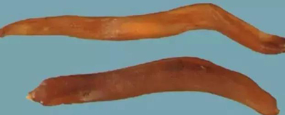 性状鉴别:本品呈长纺锤形,略弯曲,长5~18cm,直径0.5~2cm。表面黄白色至淡黄棕色,半透明,光滑或具深浅不等的纵皱纹,偶有残存的灰棕色外皮。质硬或柔润,有黏性,断面角质样,中柱黄白色。气微,味甜、微苦。